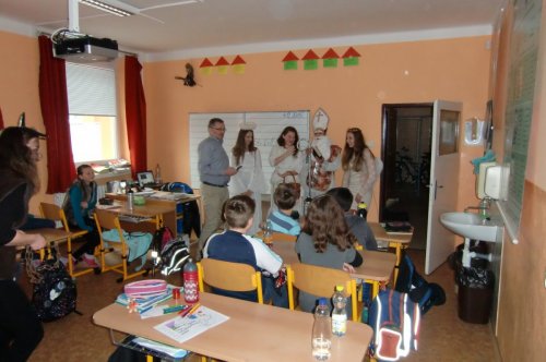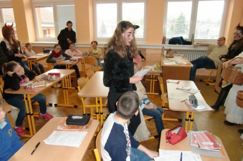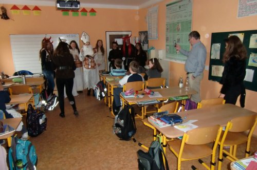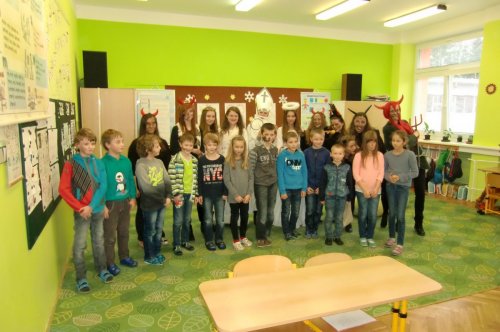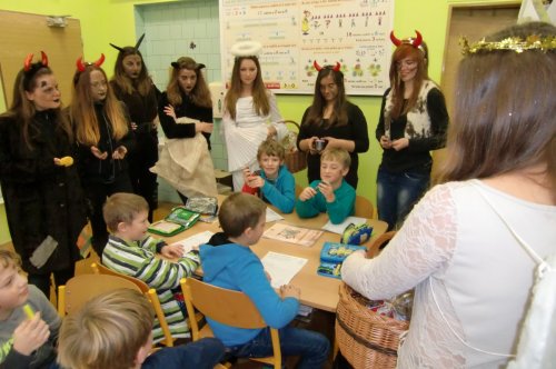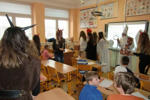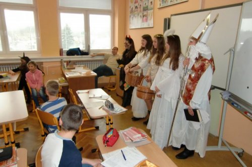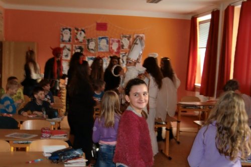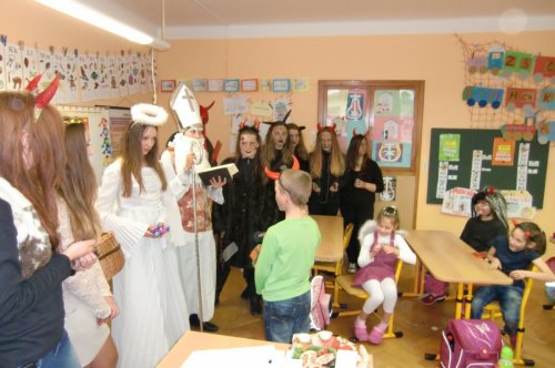 Žáci devátých tříd se převlečou za Mikuláše, čerty a anděly a vyrazí za dětmi na dolní školu. Letos tomu nebylo jinak.